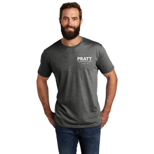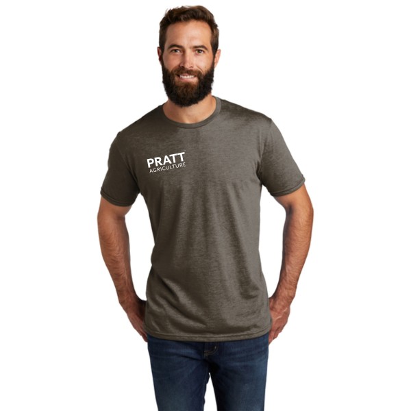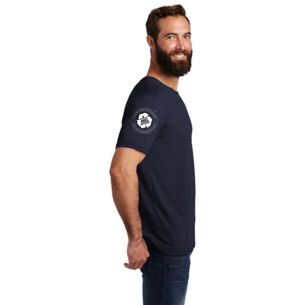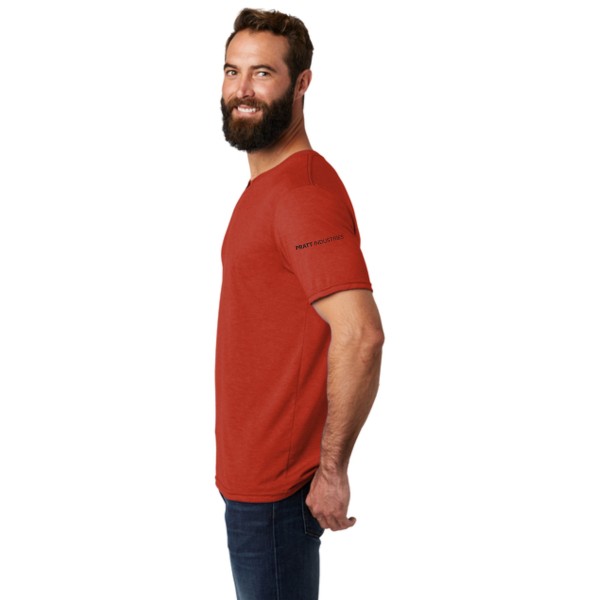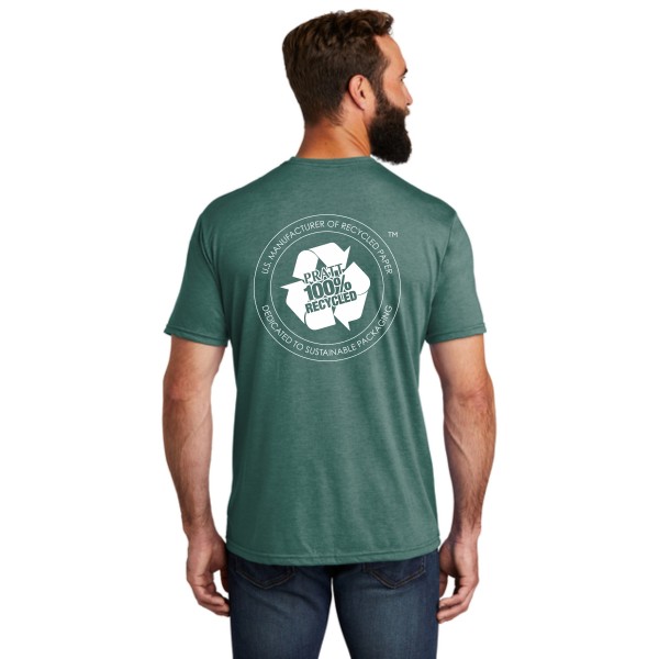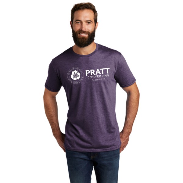Feel your impact in this crazy-soft sustainable tee that uses an equivalent of up to 6 recycled plastic water bottles.  4.2-ounce, 50% recycled polyester, 25% organic ring spun cotton, 25% modal.  This product’s carbon footprint has been measured and reduced through a combination of preferred materials and investing in carbon offset projects though the ClimeCo Certified Product™ Program.  1x1 rib knit neck.  Shoulder to shoulder taping.  Side seams.  Recycled tear-away label.