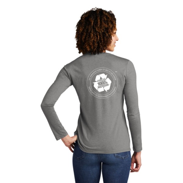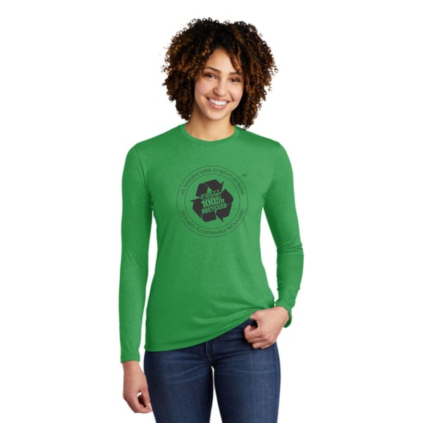 Feel your impact in this crazy-soft sustainable tee that uses an equivalent of up to 6 recycled plastic water bottles. 4.2-ounce, 50% recycled polyester, 25% organic ring spun cotton, 25% modal. This product’s carbon footprint has been measured and reduced through a combination of preferred materials and investing in carbon offset projects though the ClimeCo Certified Product™ Program. 1x1 rib knit neck. Shoulder to shoulder taping. Side seams. Recycled tear-away label.