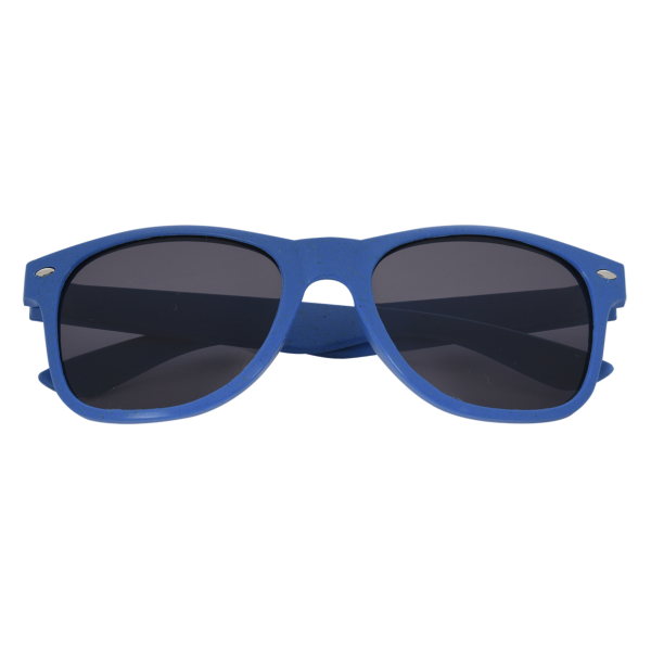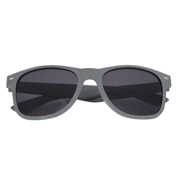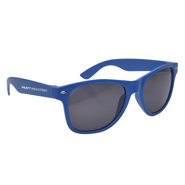 These sunglasses are made Of ABS-PMMA material. A small amount of plant-based material is used to create a flecked finish. No indication of extractable gluten was found in testing. UV400 lenses provide 100% UVA and UVB protection. Minimum quantity: 100. Only the Pratt Inline Text Logo can be imprinted on these sunglasses.