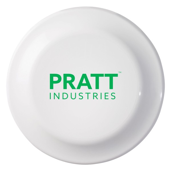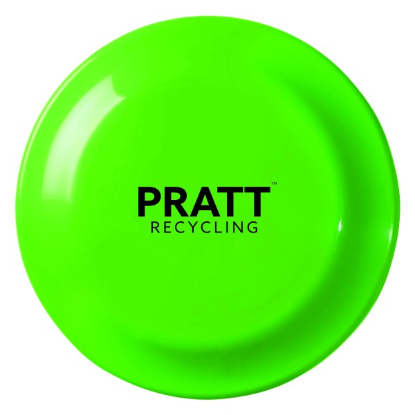 Fun flying disc. Size: 6” diameter. Made with up to 25% post-industrial eco-inspired polypropylene material. Perfect for company picnics and any outdoor event. Made in the USA! Imprint Area: 3.25” diameter.